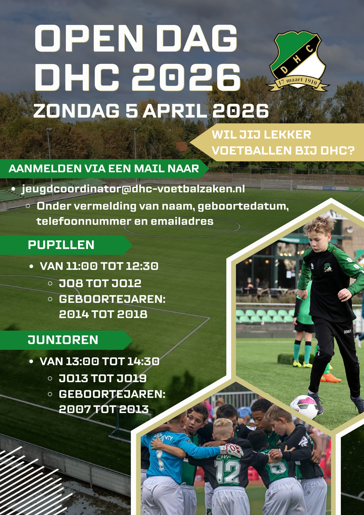 Graag even aanmelden via jeugd@dhc-voetbal.nl met de onderstaande gegevens